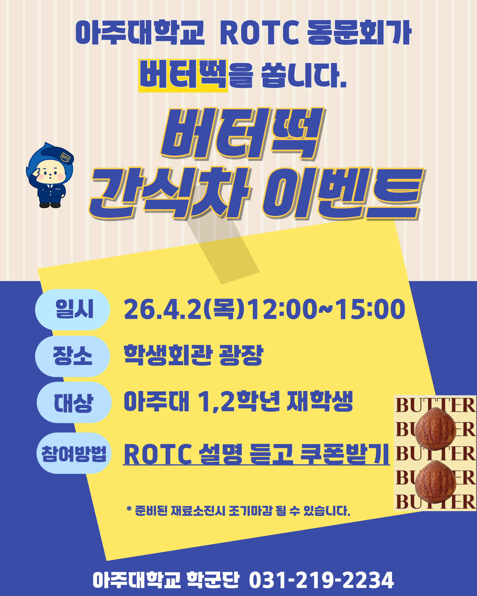 [학군단]26년 모집홍보 버터떡 이벤트(4.2 목 12:00~
